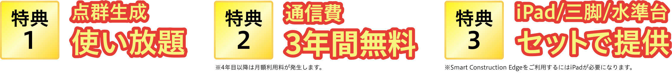 お得なパッケージ「点群処理おまかせパック」をご購入いただいたお客様には以下の3つの特典があります。